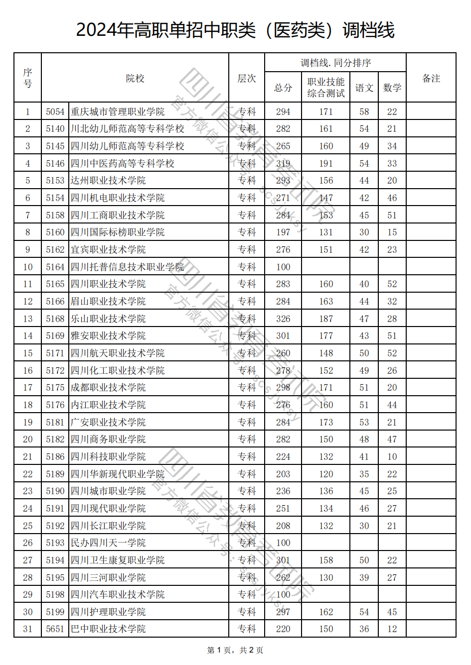 2024年四川高职单招中职类(医药类)调档线